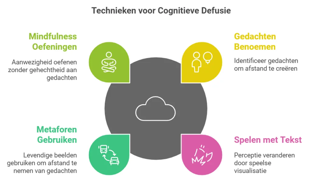 Er zijn verschillende technieken binnen ACT die je kunnen helpen om los te komen van de inhoud van je gedachten: