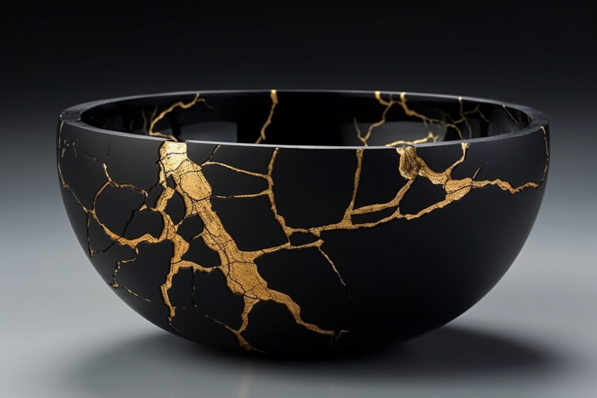 Kintsugi is an ancient Japanese art form and repair technique where broken ceramics get fixed in a pretty unique way. Instead of hiding the cracks, they’re highlighted with a mix of gold, silver, or platinum. This mix is usually made with a special glue called urushi, which gets mixed with precious metal powder.